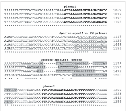 Table 3. Cross-tabulation of species identifications generated by both real-time PCR methods