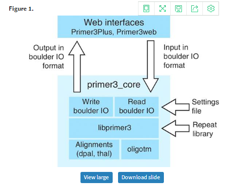 Primer3 now offers a C/C++ programming library, named libprimer3, that offers the same primer-design functionality as the command line interface (Figure 1). The rationale is that some third-party programs using Primer3 functionality will benefit from the close integration offered by a library function-call interface. For example, the NCBI Primer-BLAST service (http://www.ncbi.nlm.nih.gov/tools/primer-blast/) (11) powers part of their primer design service with libprimer3.