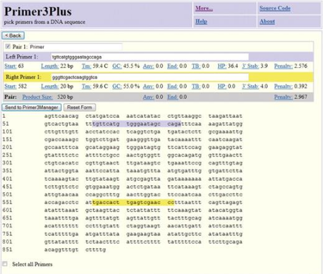 · Whole-genome sequences are now available for many species. Thus, it is possible in principle to electronically estimate the likely specificity of candidate primer pairs, and one common approach is to search for and then avoid segments of the intended amplification target that are too similar to other sequences (6,7,21). Although we have not added a ‘search-and-avoid’ capability to Primer3 itself, we have enhanced Primer3, so that it can better support software that uses this approach. This support consists of new ways to precisely constrain primer location, for example, to constrain primers to locations with minimal similarity to other sequences. In addition, for reverse-transcriptase (RT) PCR, Primer3 can now require primers that span exon–exon junctions.