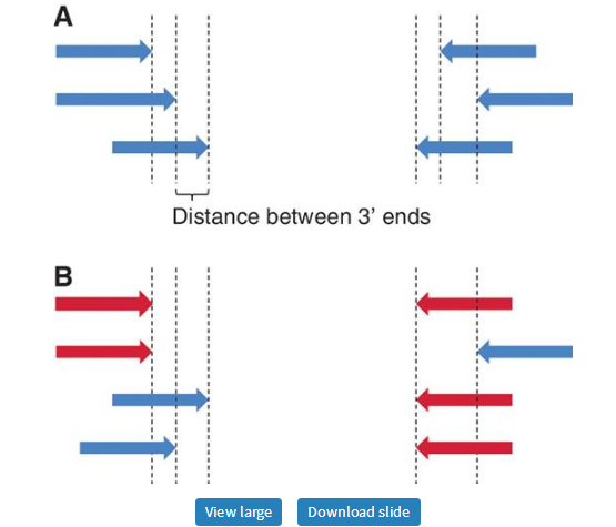 Unique and non-unique primers. (A) The 3′-end of each forward and reverse primer has a unique position; Primer3 can now ensure this and can ensure a minimum distance between the 3′-ends of all forward and/or all reverse primers. (B) Each primer pair is unique, but the red primers are used more than once.