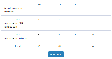 Structures of repeat junctions can be generally grouped into four basic types according to the sequence annotations at each side of the junction (Figure 2). To classify the junction type for a short sequence, a BLASTN search against a selected repeat database is performed. The BLASTN results are parsed and annotated for repeat junctions. A Java program ‘RJFinder’ was developed to take a sequence file as input and a repeat junction-containing sequence file as output. For a TE junction to be accurately detected, one region of the query sequence has to match at least one known TE sequence in the blast search. The second region can have a match to another known TE sequence, or can have no match. Based on our observation, a top hit with an E-value ≤1E−50 for the first match and a hit E-value ≤ 1E−5 for the second match are reasonable values for effective detection of ‘distant homologs’ of known TE families to classify repeat junction types. Therefore, these values are used in the default setting in the web program. The E-values from BLAST search were only used in identification of repeat junctions in the analysis.